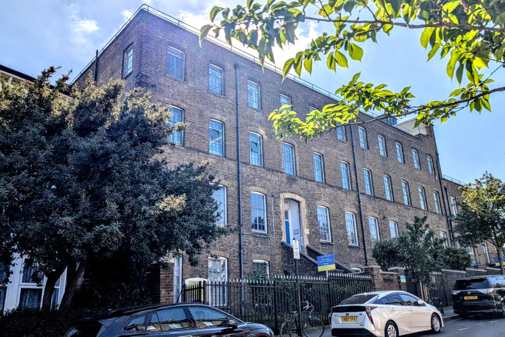 It is a calm and private space in Archway Studios, next to Dartmouth Park in London N19. Parking is available nearby. Tufnell Park, Archway, and Upper Holloway stations are a few minutes walk.